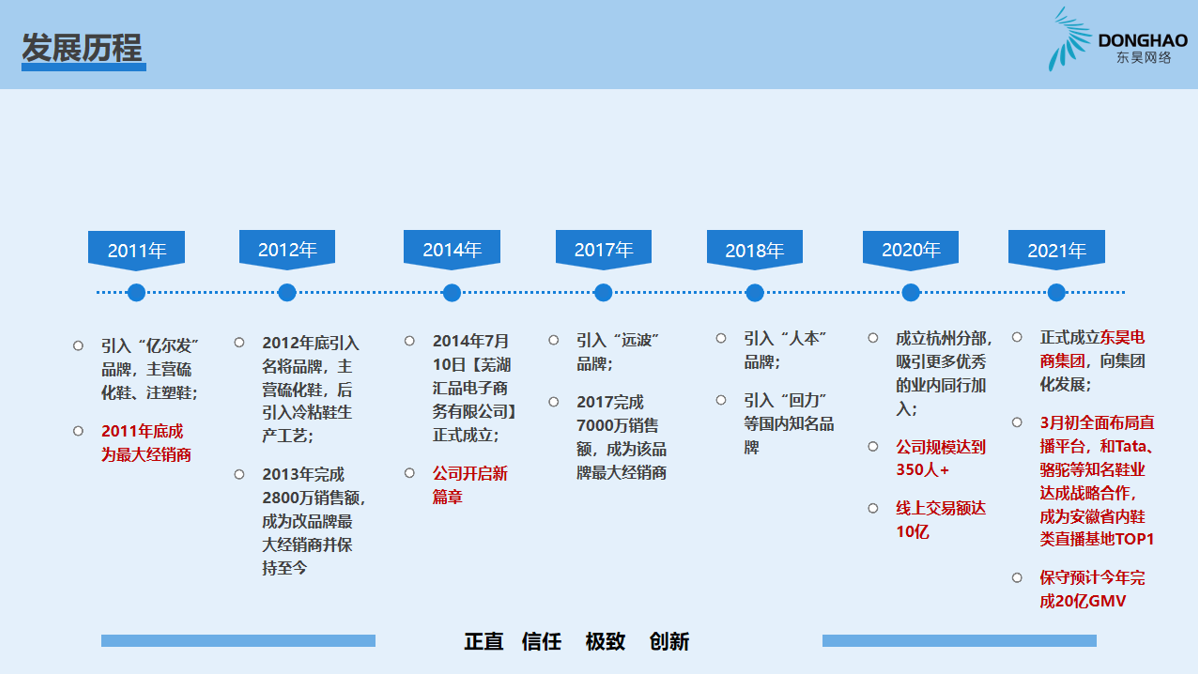 蕪湖東昊網(wǎng)絡科技有限公司,成立于 2014 年,是一家以互聯(lián)網(wǎng)平臺銷售為核心的電子商務運營商,公司成立以來,始終專注于休閑運動鞋的互聯(lián)網(wǎng)銷售業(yè)務,產品線覆蓋硫化鞋、注塑鞋、冷粘鞋,在互聯(lián)網(wǎng)二級類目單品牌排名前三,綜合成績排名TOP1;